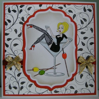 This card is a picture that I managed to make in CAP, my first one, but I found it too fiddly to cut out as a decoupage -- just too many spindly legs. I decided to laminate it and found that I could cut it out without having to leave a border, they say one learns something new every day.
